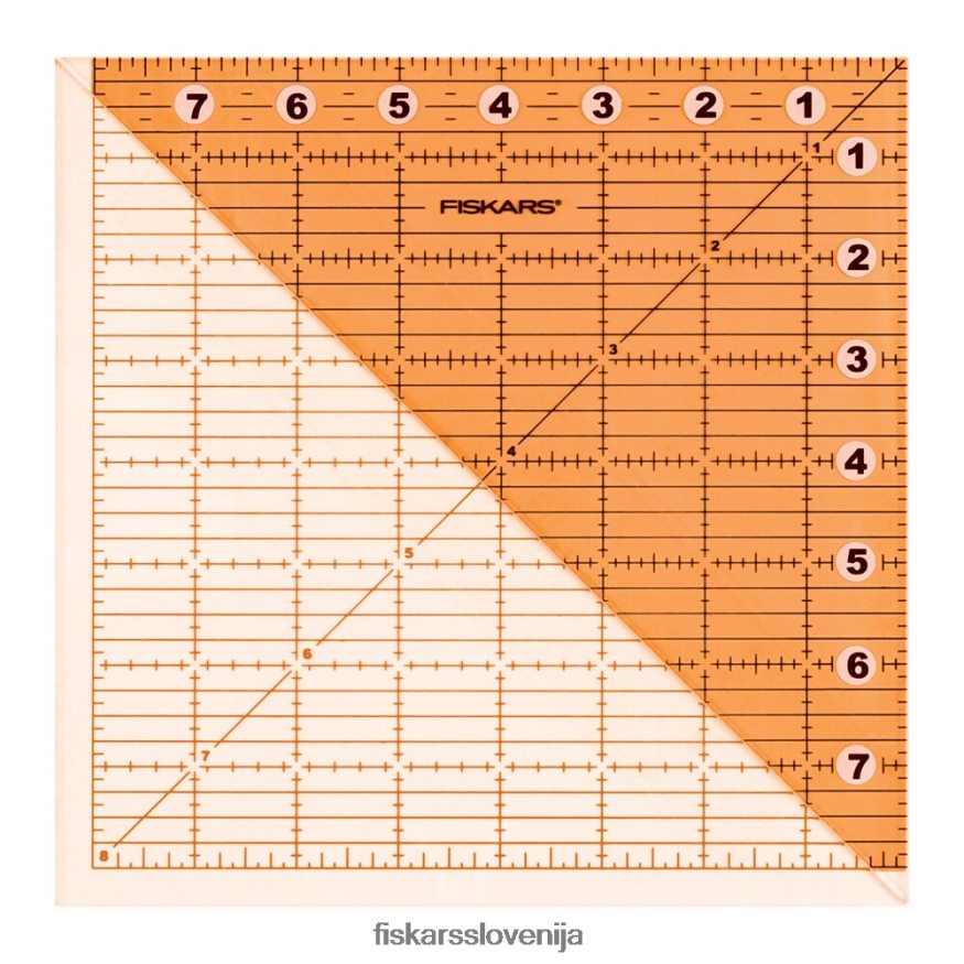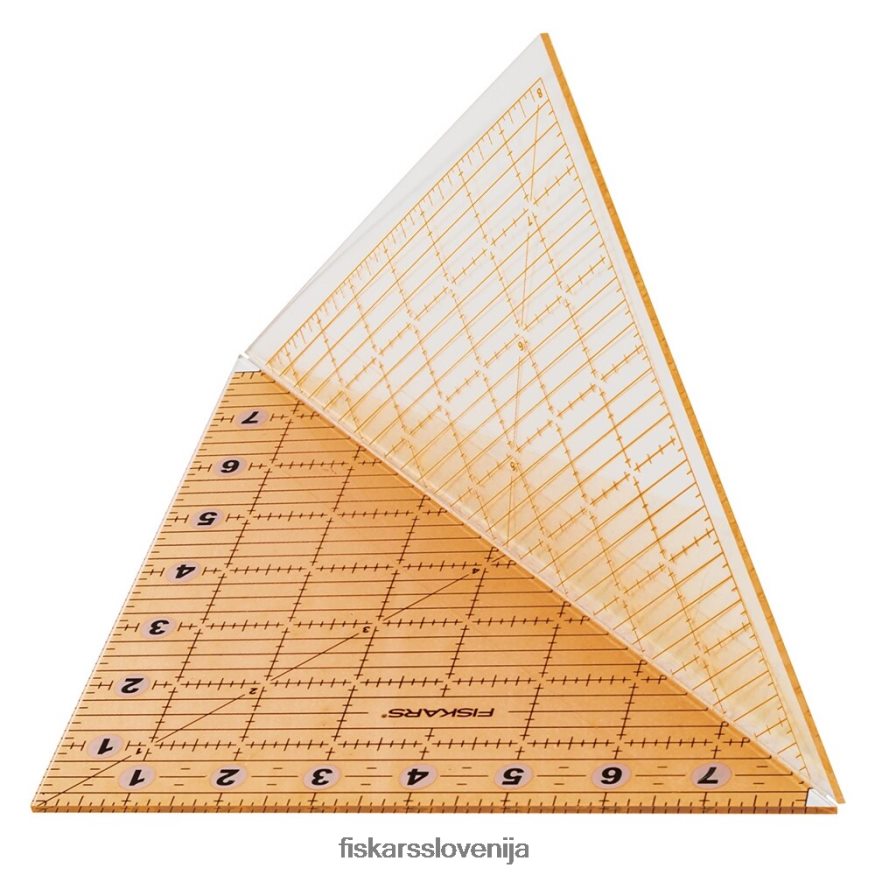 ostrite vogale in odrežite polkvadratne trikotnike, pravokotnike ali kvadrate od 1″ do 8″ brez odpadkov blaga. to robustno akrilno ravnilo se prepogne na pol za več možnosti in ima vgrajen 1/4″ dodatek za šiv za enostavno merjenje. Jasen, trpežen tečaj omogoča, da ravnilo leži popolnoma ravno za natančno poravnavo. Oznake imajo jasna presečišča za izboljšano vidljivost in lahko berete na svetlih, temnih in vzorčastih tkaninah.