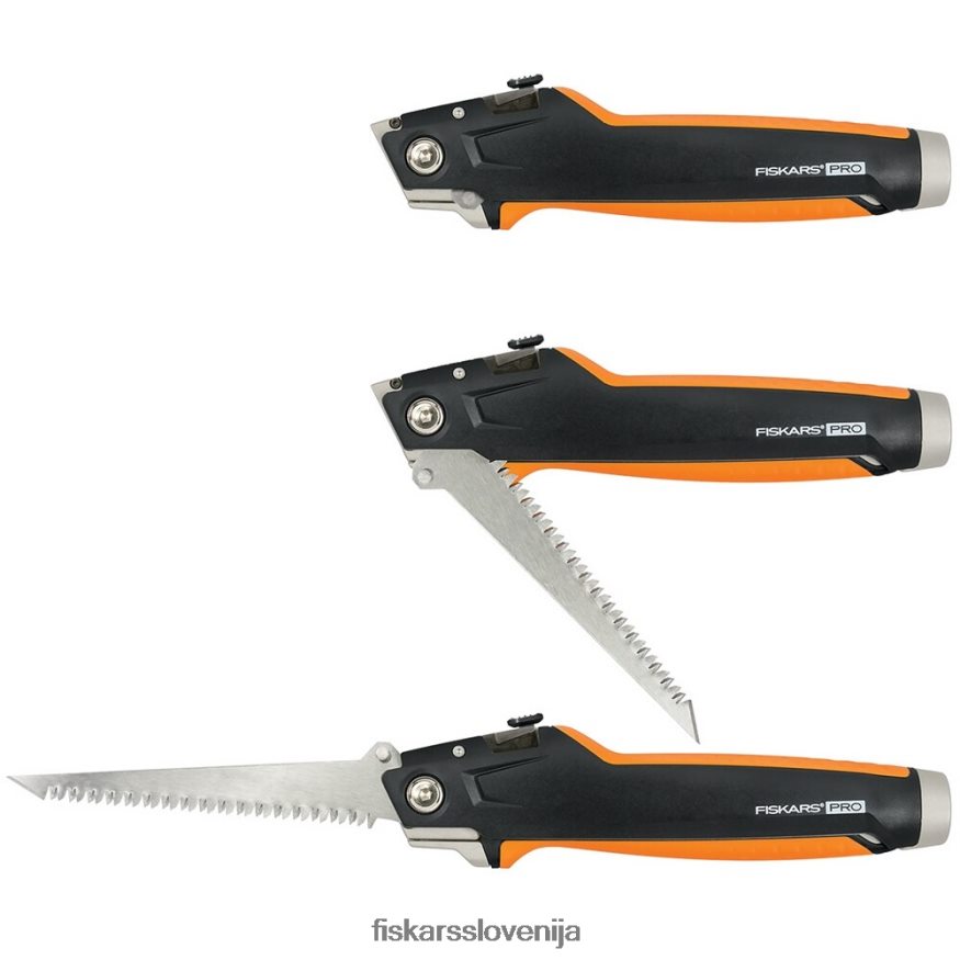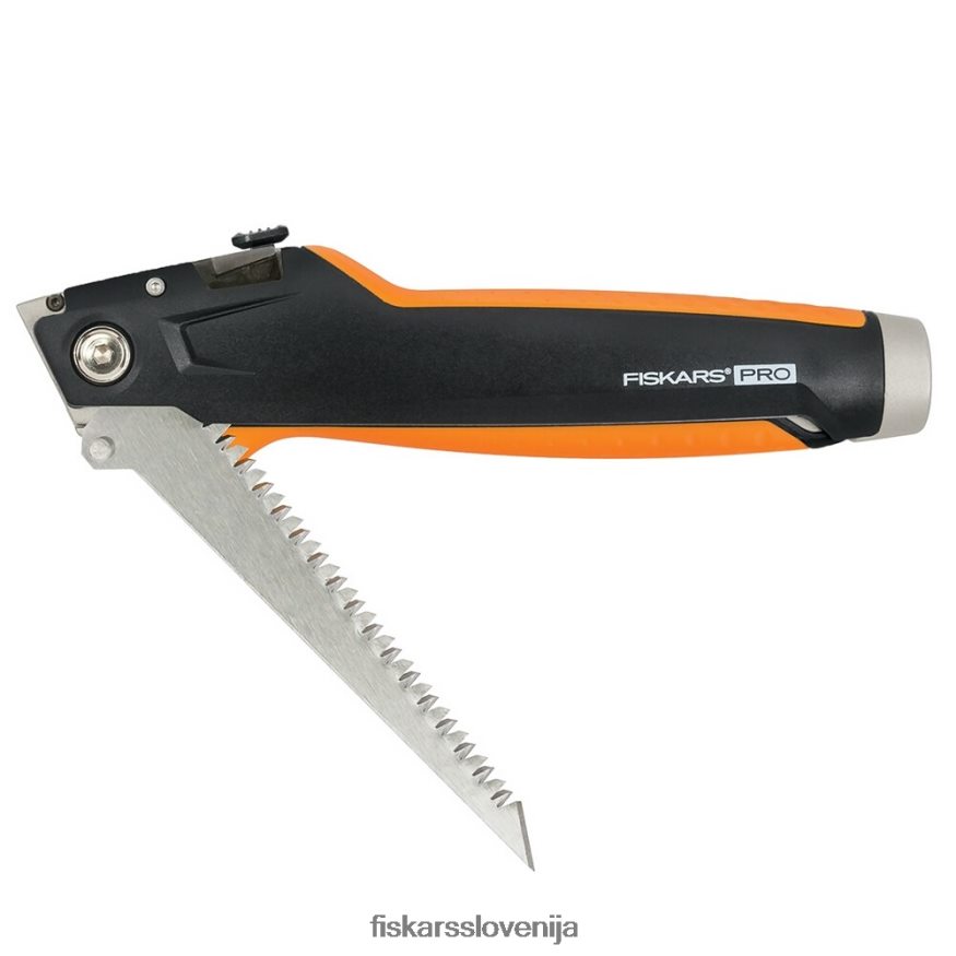 - fiskars pro suhomontažni nož je orodje 2 v 1 s standardnim rezilom + vbodno žago, ki prebija skozi suhomontažne plošče za eelektrične omarice in drugo