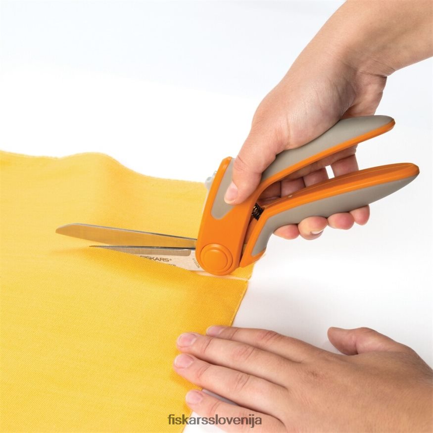 - edinstven dizajn ročaja pomaga, da tkanina leži ravno za natančne reze, medtem ko je spodnji del podaljšan rezilo leži pod tkanino, tako da lahko režete brez prestavljanja